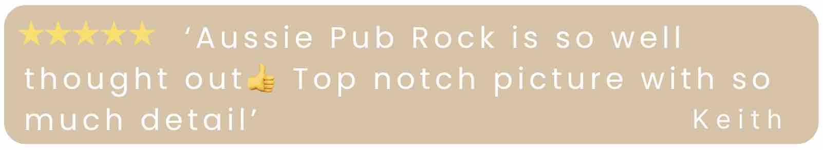 For you die-hard Aussie rockers! You'll absolutely love this dream reunion set in an old style Sydney/Melbourne pub. The room is filled with nostalgia, the walls are filled with history. You know the music is great, the beers are flowing and the stories being shared are epic!