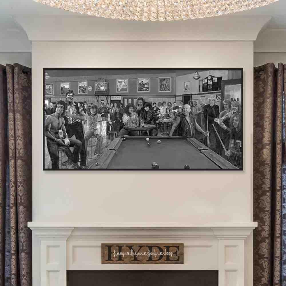 The intention behind this piece is to celebrate the times and music we grew up listening to and to create an inspirational scenario that many of us would have loved to attend. The scene is was based on several iconic pubs (not just one).