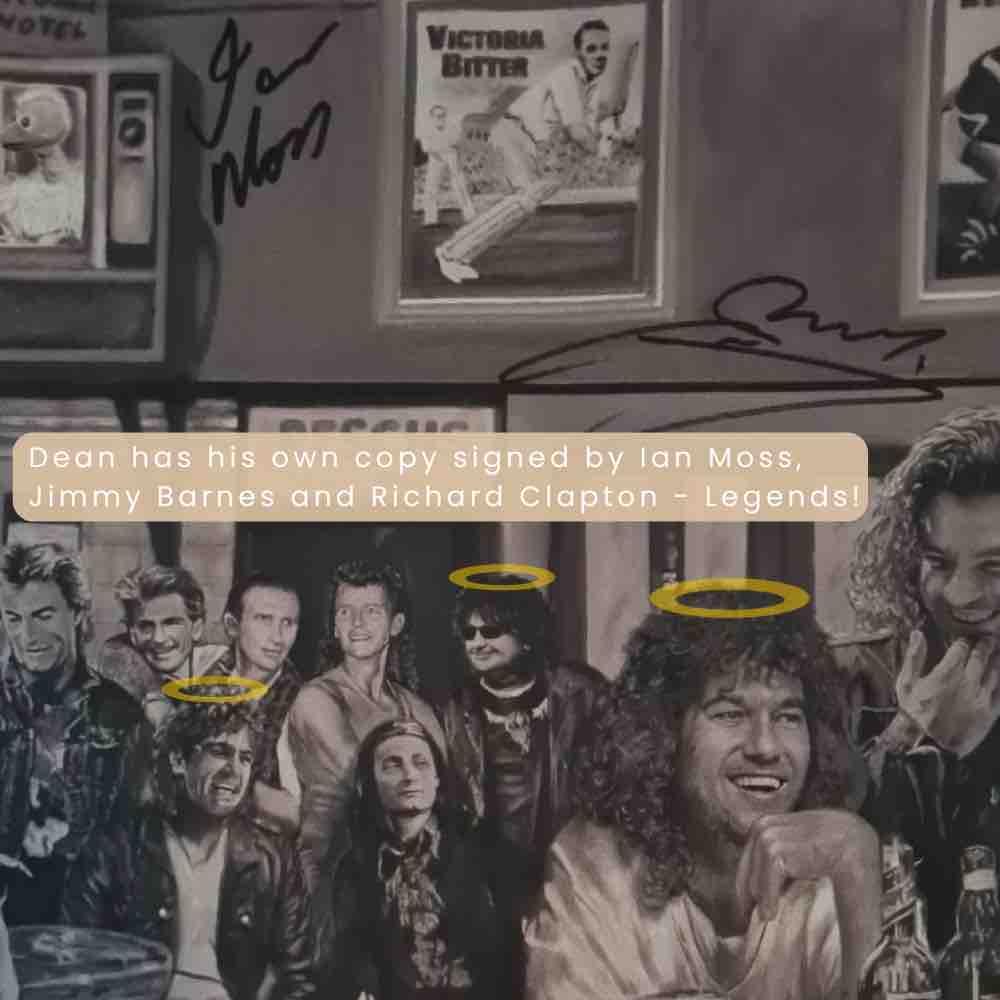 Featuring Jimmy Barnes and Ian Moss (both have signed Deans personal art already), Angus and Bon, Angry, Michael Hutchence, Chrissy Amphlett, Doc Neeson, Peter Garrett, Iva Davies, Bernard Fanning, Jon Stevens, Daniel Johns, Andrew Stockdale and a whole swag more!
