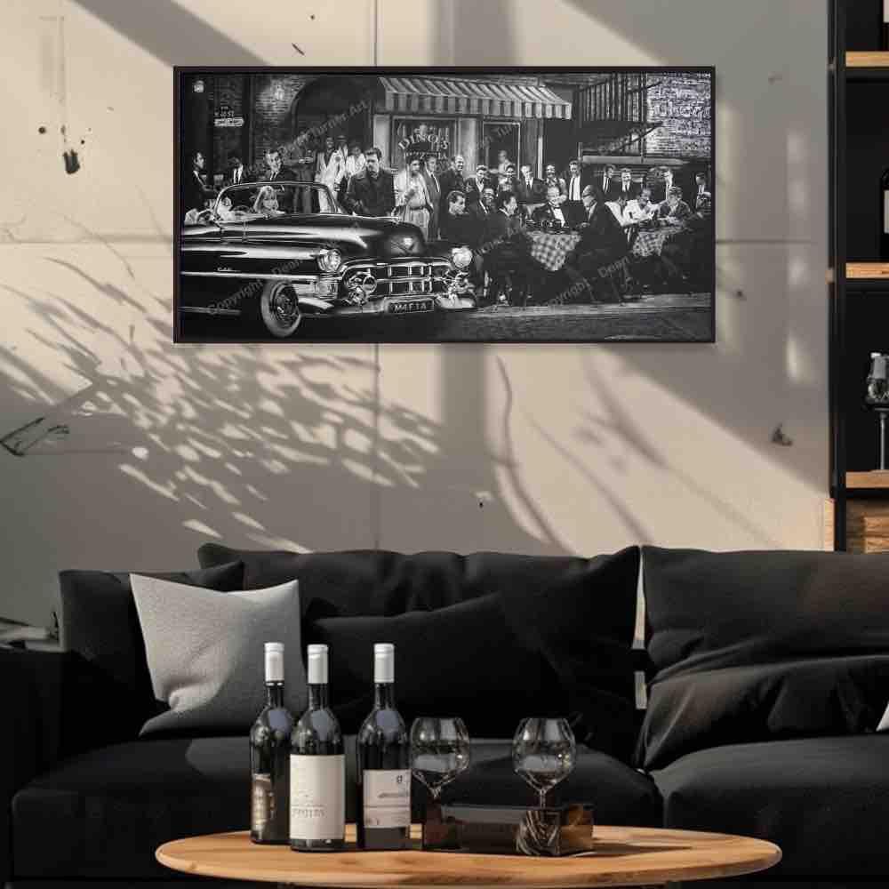 Let's face it, Dean isn't the sole fan who truly relishes watching a great classic mobster film. These movies are timeless classics, perfect for endless rewatches. The iconic characters featured in Dean's painting have set the stage for future generations of mafia enthusiasts.