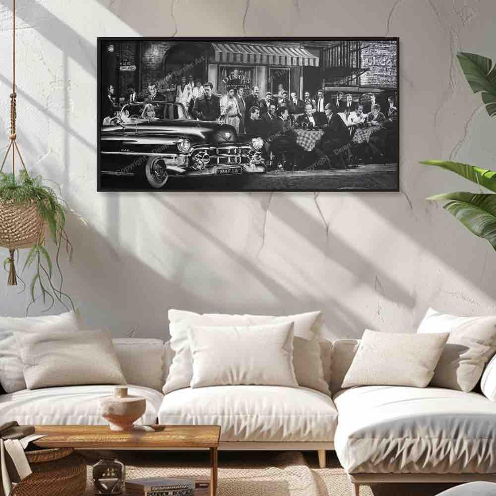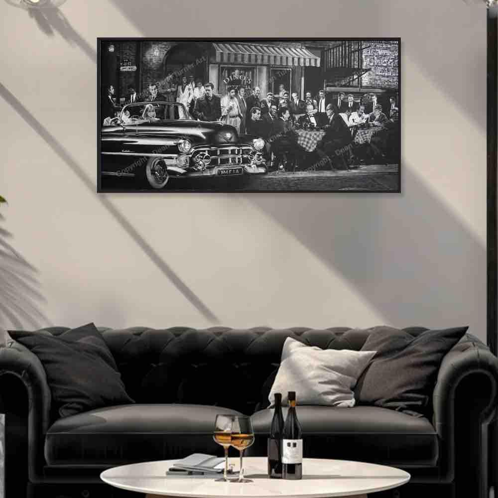 Admit it, Dean isn't the sole fan who truly relishes watching a great classic mobster film. These movies are timeless classics, perfect for endless rewatches. The iconic characters featured in Dean's painting have set the stage for future generations of mafia enthusiasts. In years to come this classic painting ensures these actors will never be forgotten!!
