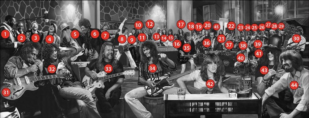 Guitarist in the 'Ultimate Guitarist Reunion' artwork include: